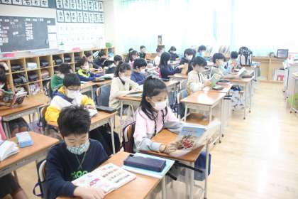 思い思いの本を手に取ったり、学年によっては先生の読み聞かせを聞いたりしながら、朝の時間を静かに過ごします。