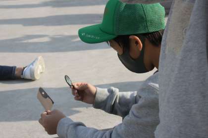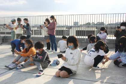 とても明るい光になって驚く子どもたち。