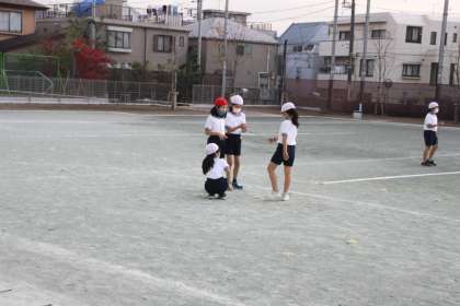 4年生が午後の校庭で体育をしています。
