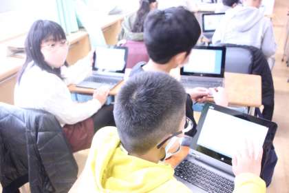 栄養のバランスを取るために必要なレシピさがしに取り組む6年生。