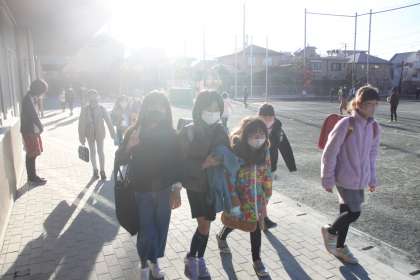 若干、寒さがこたえる朝ですが、子どもたちはとっても元気!