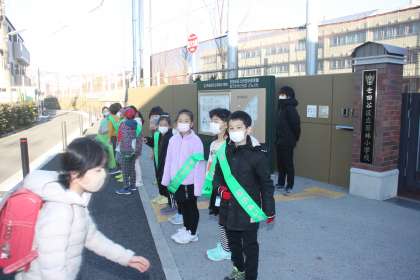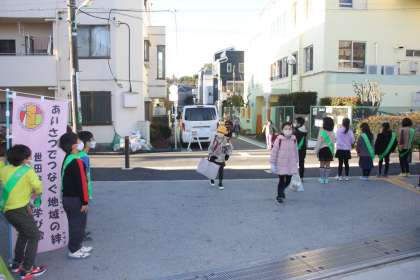 賑わいのある正門前に2年生たちの元気な声が響きます。
