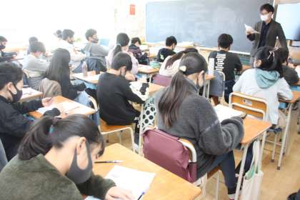 選択問題中心のテストですが、みんな聞き耳を立てつつ真剣に考え、回答を進めていきます。