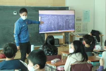 担任の先生が大型モニターに映しているのは、前回の板書の様子です。
