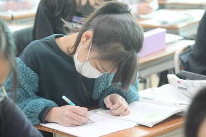 2学期に学習した内容のプリントを次々に解いて答え合わせをしていきます。