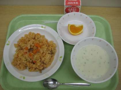 チキンライス じゃがいものポタージュ はれひめ 牛乳