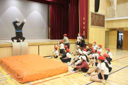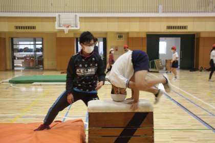 とび箱とヘッドスプリング、ハンドスプリングを中心とした器械運動です。
