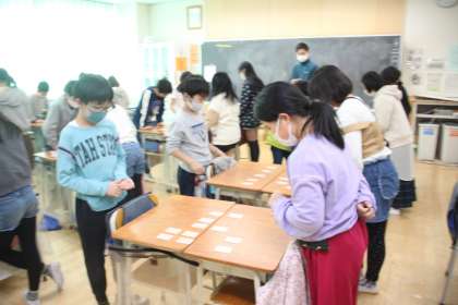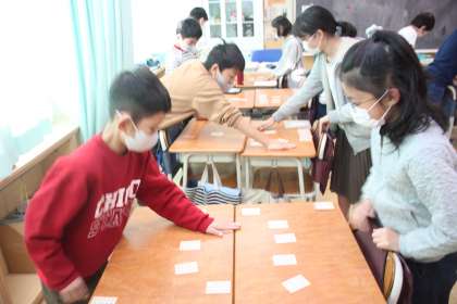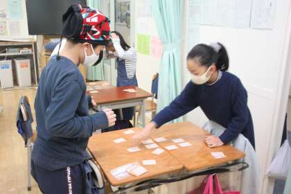 4年生が教科日本語の学習の一環で、百人一首を行いました。