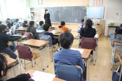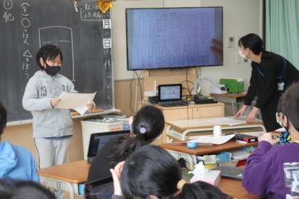 5年生が日本の食糧自給率をテーマに、発表活動をしています。