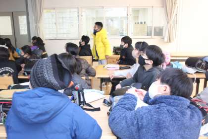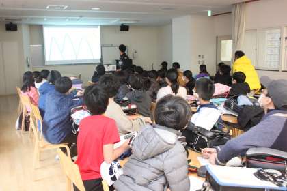 6年生が作成したビデオを、お互い上映し合う大イベントが、多目的室で行われました。