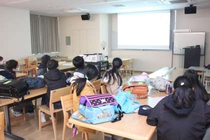 さながら映画館の様相を呈する多目的室で、お互いが作成したビデオを観あいました。