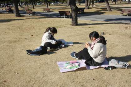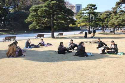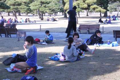 国会議事堂からやってきた1組は食後に皇居東御苑へ、皇居東御苑から来た2組は国会議事堂へ。