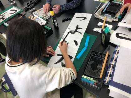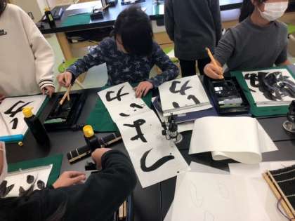 書初めの練習を行いました。今年から、毛筆に取り組んでいる3年生!「つけ・とめ・はらい」に気を付けて、「つよい力」を全集中で取り組みました。