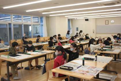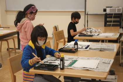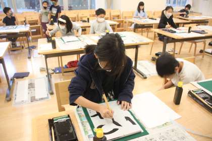 みんなでかきぞめのお題「つよい力」を練習しました。