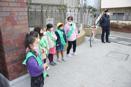 お巡りさんにも一緒にあいさつ運動に加わってもらいました。