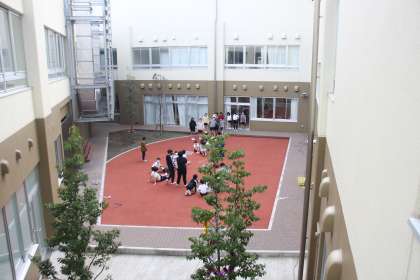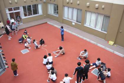 若小名物の中には「光庭」で、6年生が長なわとびをしていました。