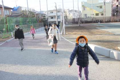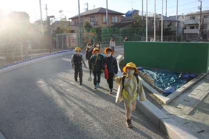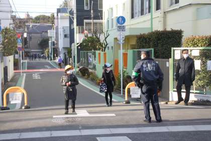 交通事故防止のために、世田谷警察署からお巡りさんが今日も来てくれました。