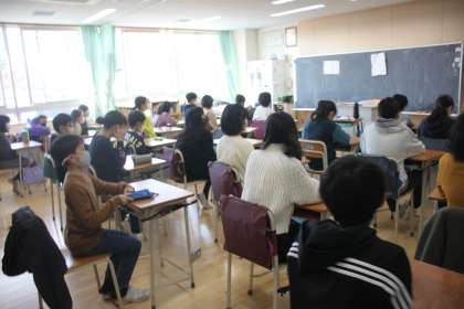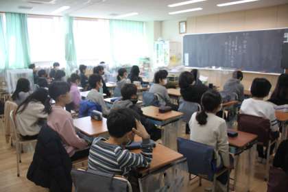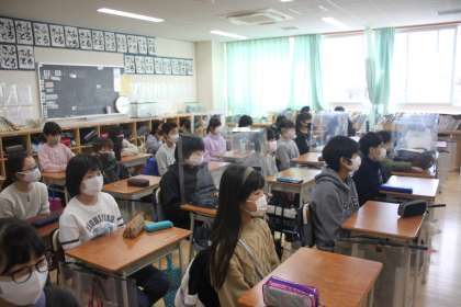 どの教室でも静かに校長先生のお話に耳を傾けています。