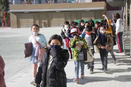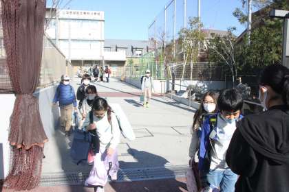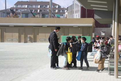 玄関前で名残惜しそうに話をしているのは校長先生です。