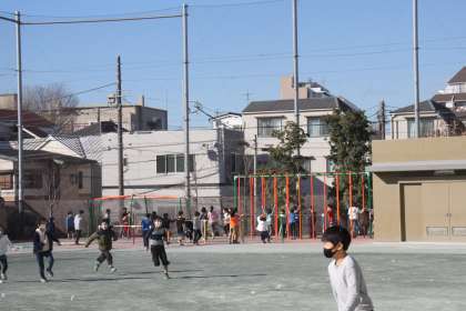 3学期初日を迎えた若小ですが、抜けるような青空のもと、中休みの校庭は大賑わいです!