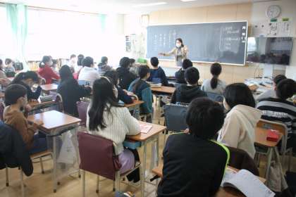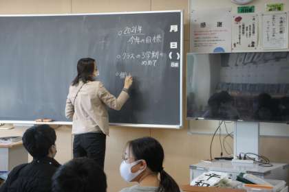 6年生の教室では、3学期、そして今年の目標について考えています。