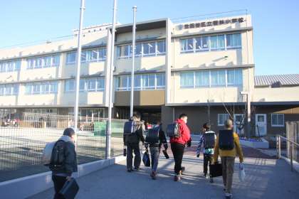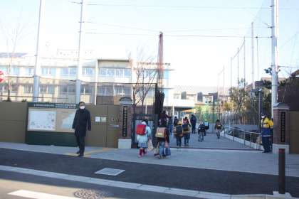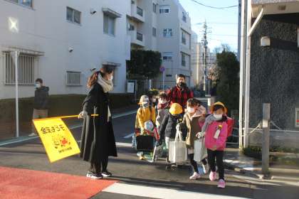 土曜日はスクールゾーンの交通規制がかからないため、登校時刻には先生たちも通学路の見守りをしています。
