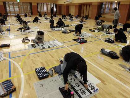 5年生が、体育館にて書初めを行いました。「豊かな心」を集中して丁寧に書くことができました。
