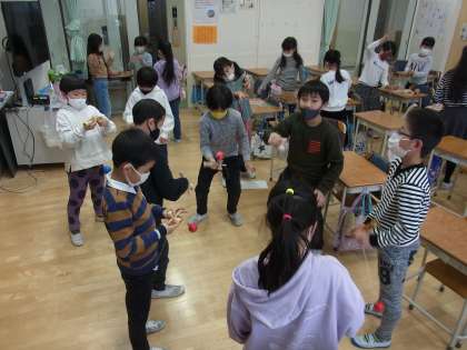 なかなか難しいけん玉も、友達に教えてもらうと、不思議なもので