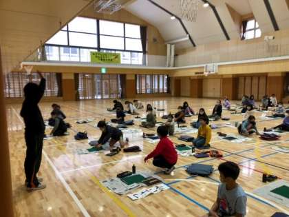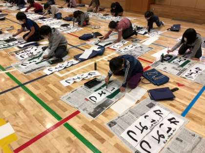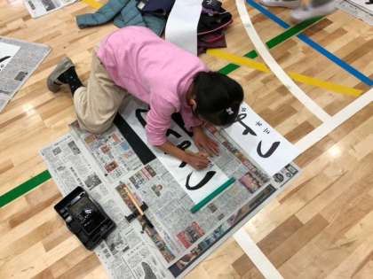 毛筆になって、初めての書初めを行いました。一文字一文字、見本を見ながら丁寧に書くことができました。