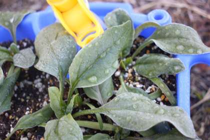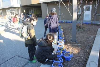 登校してきた2年生が、まず行うのが育てている野菜のチェックです。