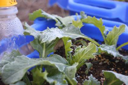 昨日の雨のせいもあってか、今朝の野菜たちには霜がおりていて大興奮!
