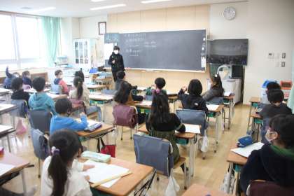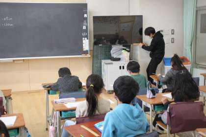 今日は長さの学習ですが、教科書にも載っている竹の物差しをつかって長さを測る学習をしました。