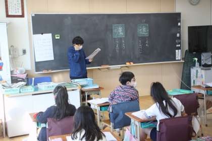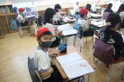 2年生が国語の時間に、漢字の書き取りをしました。
