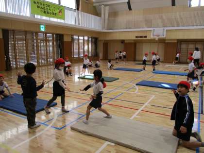 準備運動は体育係がてきぱきと行い、マット運動では向かい合わせで回った後にじゃんけんをして、盛り上がりました。