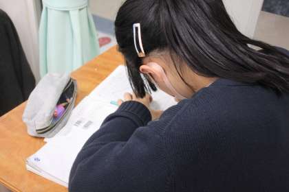 じっくりていねいにノートを取りながら、三角形を操作するイメージを作り上げました。