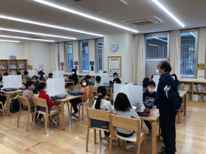 週に一度の図書の時間、面白そうな本が多く選ぶのに真剣な三年生。本を読むだけ、知識の量も増えます。たくさんの本に触れ、本の楽しさを感じよう!