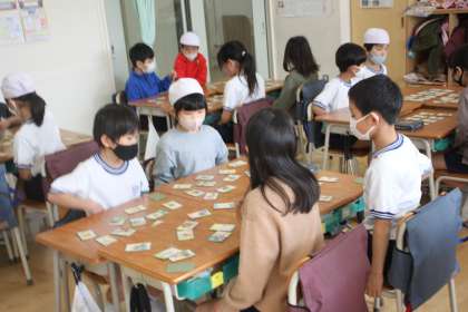 先生が札を読み上げるのを、固唾をのんで見守ります。