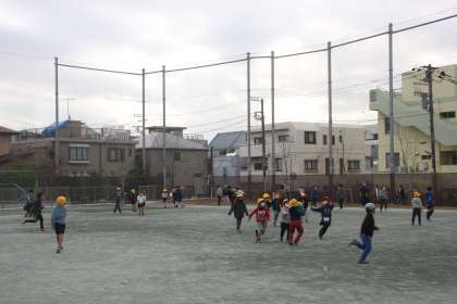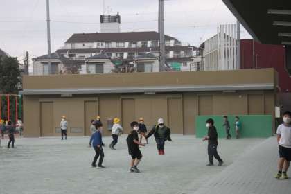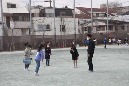 中休みの校庭では、子どもたちが元気いっぱいに遊んでいます。
