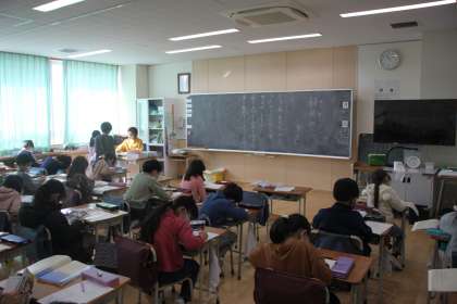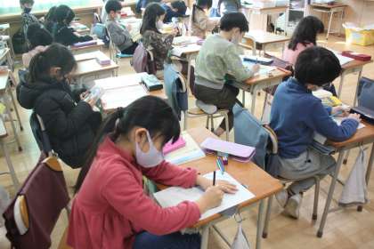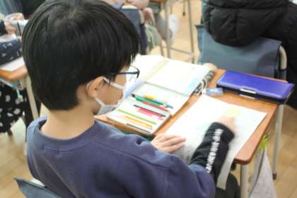 教科書に載っている漢詩「静夜思」を音読した後、そのイメージをイラストで表現します。