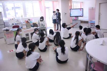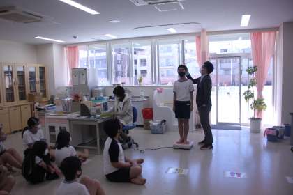 6年生が保健室に集結し、発育測定を受けました。