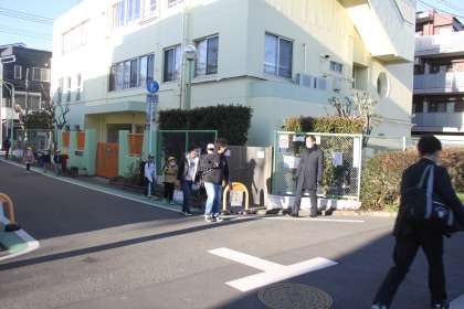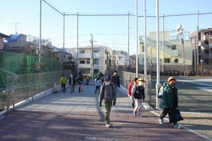 校長先生は児童館の前で元気いっぱいのあいさつを振りまきます。