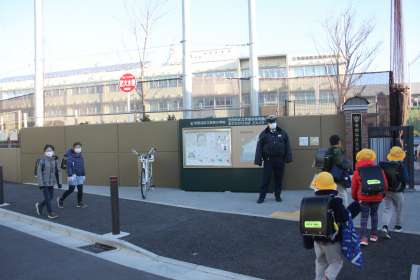 もちろん、見守りに来てくれているお巡りさんにもしっかりあいさつします。