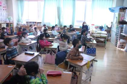 元気いっぱいに英語で読む活動をして、大満足の45分間だったようですね。