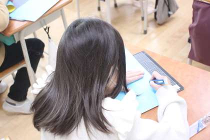 2年生が図工の時間に、カッターを使った工作をします。