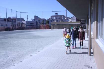 暖かい日差しと、抜けるような青空の下、子どもたちが元気に下校していきました。