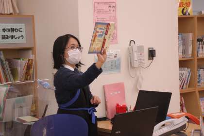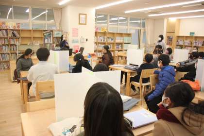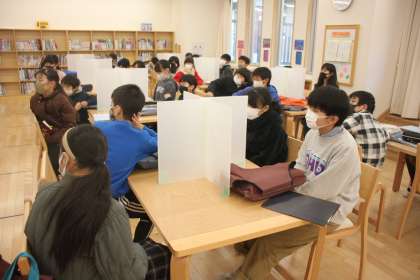 5年生が学校図書館にやってきて、読書活動に取り組みました。