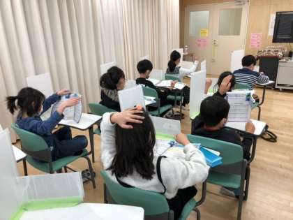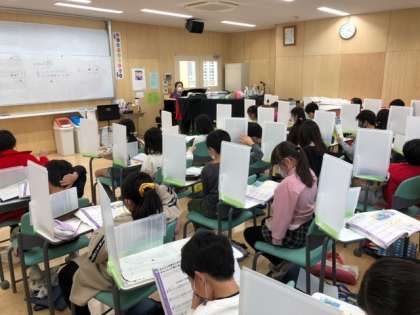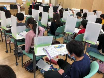音楽の授業では音楽を聴き、手で音域を表現しました。リズムに乗りながら、高低差を確認しながら楽しく学習を行いました。