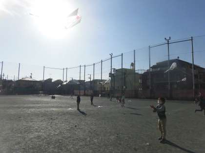 風を受けて空に舞い上がる凧に、皆も笑顔になりました。