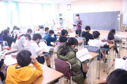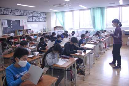 5年生の教室では、川場村についての資料を読んでいました。