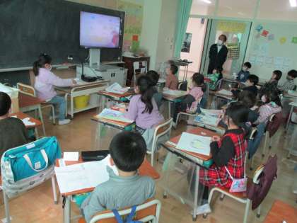 聞いている友達もとてもよい聞き方で、笑いがあふれる楽しい時間になりました。